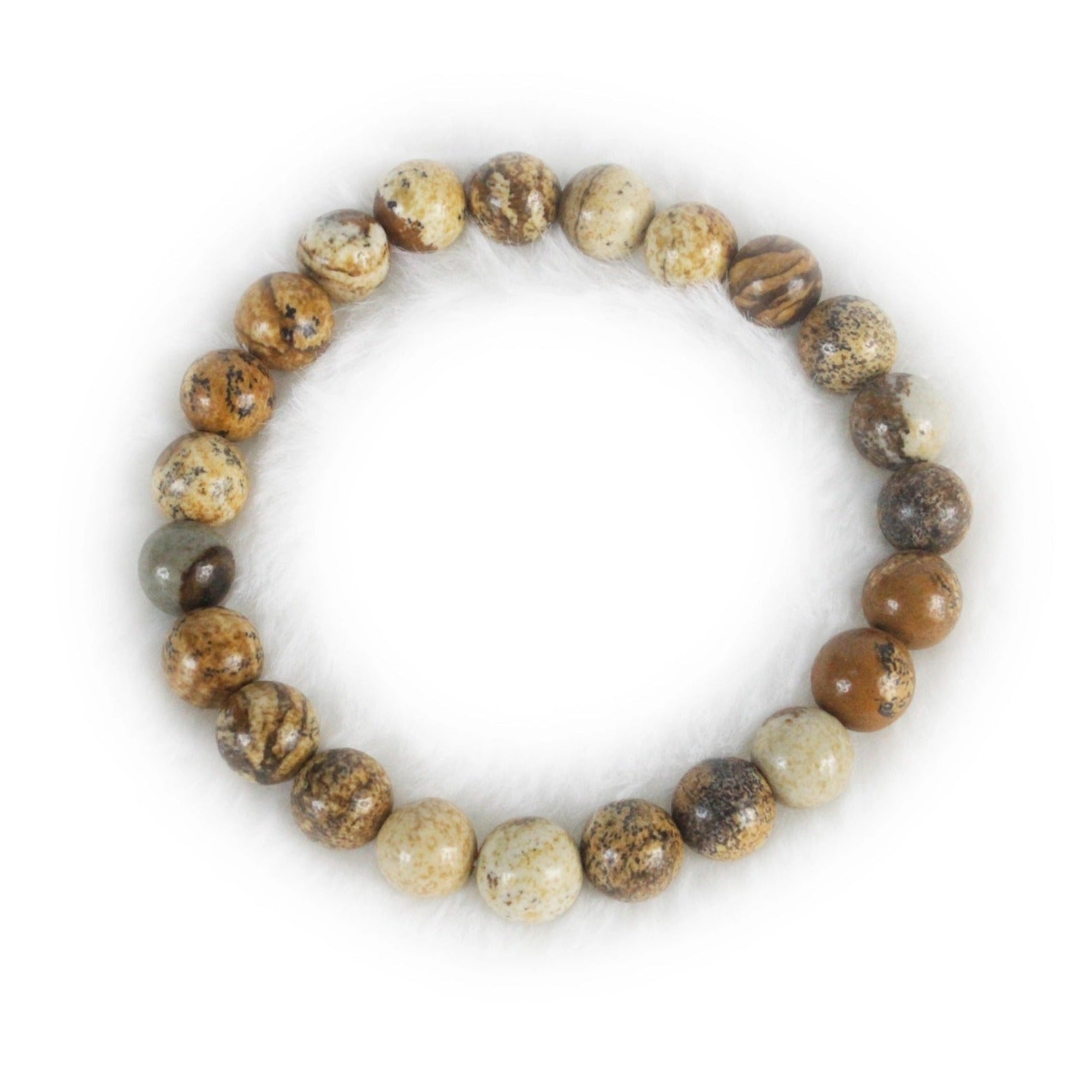 The Picture Jasper bracelet is made with natural stone beads. Stretch style to fit most wrists.