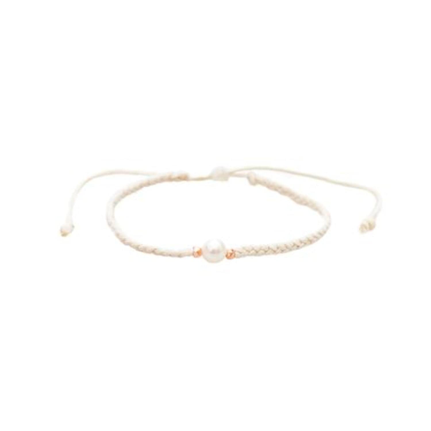 The Pearl braided string bracelet is made with a cotton cord and has an adjustable sliding string closure.