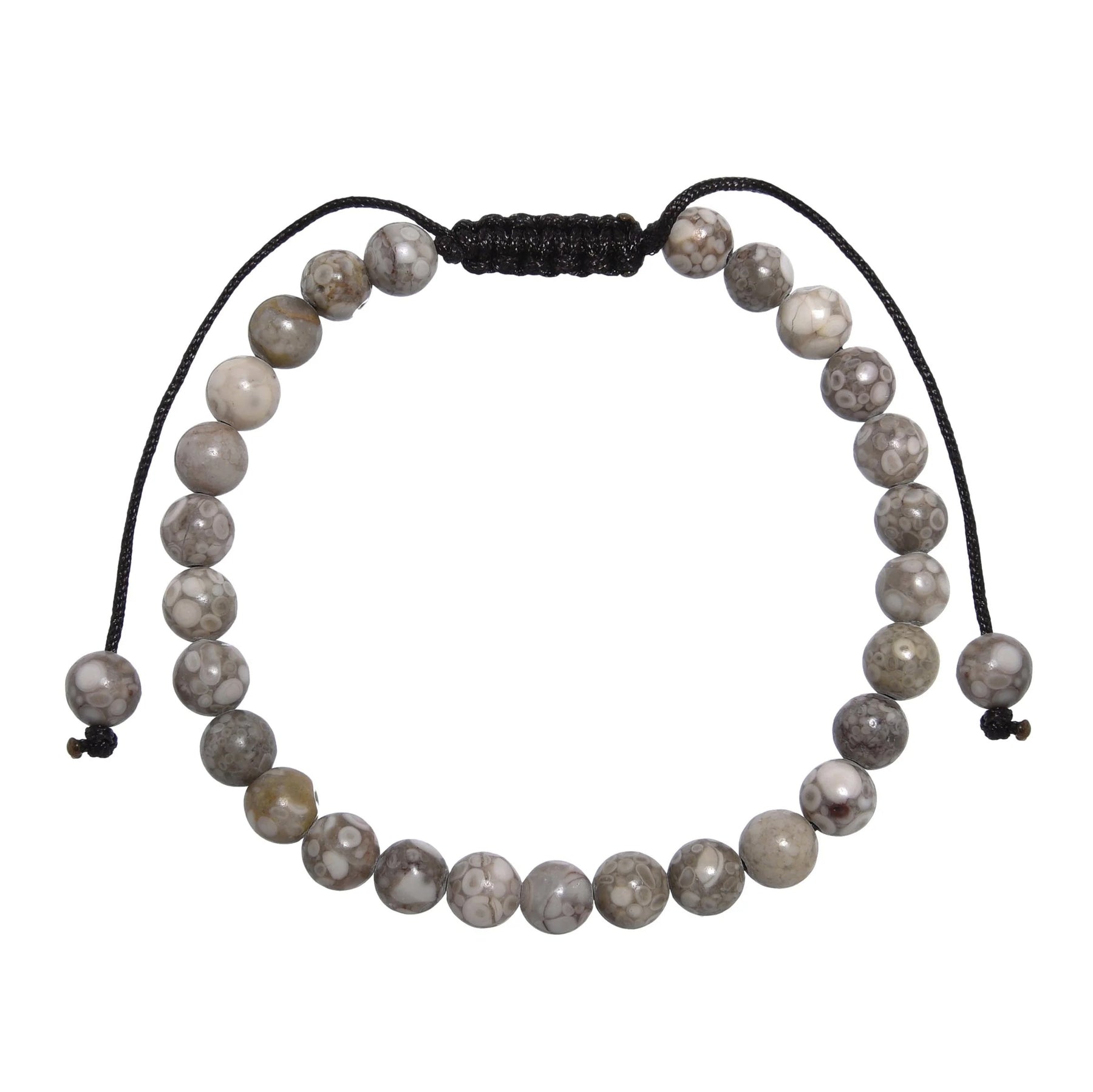 The Rice Wheat Stone pull tie bracelet is made with natural stone beads. Slide pull tie style cord fits most wrists.