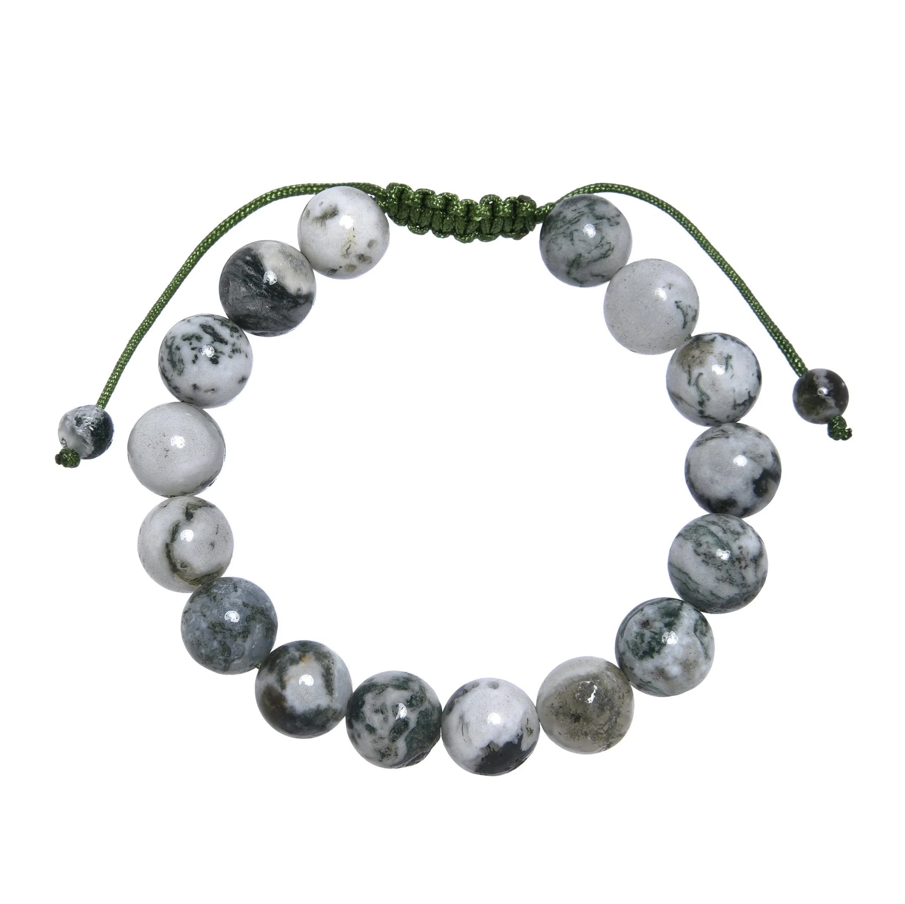 The Tree Agate pull tie bracelet is made with natural stone beads. Slide pull tie style cord fits most wrists.